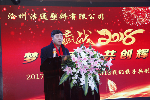 年會(huì)伊始,潔通公司總經(jīng)理尉力勇致新春賀詞,回顧了2016年潔通公司的發(fā)展,總結(jié)了一年里公司各部門兢兢業(yè)業(yè)的工作成果,表達(dá)了對(duì)各位員工的感謝和敬意,同時(shí)對(duì)2018年的工作作出了美好的展望。
